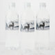 Etiquetas de garrafa de água de Natal com uma imagem de aquarela com uma rena de silhueta preta entre alguns pinheiros. Esquema de cor neutra a preto e branco.