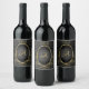 Rótulo de Garrafa Real Elegante e design moderno de Monograma de Ouro Negro Clássico. Incluindo o design de damasco floral do rico.