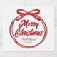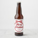 Um elegante e moderno texto cursivo sobre uma linda fita vermelha e arco lê FELIZ NATAL em tipografia cursiva elegante. Um arco amarrado é super tendência para rótulos de garrafas de cerveja para festas de Natal de 2025. Personalize com o nome da sua família ou empresa no centro.
