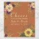 Etiqueta de vinho de casamento Elegante, moderna e rústica, com girassol de cor d'água, flores cor-de-rosa, verde. Saúde ao Amor e Felicidade!