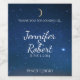 Esta bela e elegante design, chamada Starry Night Wedding, tem uma bela noite de design. O fundo é um belo gradiente do azul real ao azul marinho, que dá um efeito de galáxia leitosa e tem estrelas e lua crescente. Seu texto está centrado em branco. Perfeito para um estilo temático ao ar livre, casamento noturno ou casamento cômico rústico. Este conjunto tem convites, cartões salve a data, cartões de resposta, cartas de agradecimento, cartões de tenda de número de tabela, selos de envelope, rótulos de vinho, etiquetas de endereço de retorno e muito mais peças de papelaria de casamento, favores e presentes disponíveis. Use os adesivos de selagem de envelope para qualquer dos seus presentes do DIY - estes estão disponíveis em tamanhos grandes e pequenos! Todos os elementos são impressos nos nossos produtos de alta qualidade, não incluem ouro real, joias, gravuras ou outros elementos têxteis. Todos os designs são copyright Noteable Express, Inc. Todos os direitos reservados.