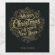 Rótulo de Vinho de Script de Natal Preto e Dourado