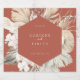 Bonitas frentes de palma, rosas e estrutura geométrica de orquídeas, secas em boho-chic, sobre fundo cor de laranja ferrugem, etiqueta de bebida personalizada. Projetado para combinar com nossa Coleção de Casamentos Boêmia Oasis.