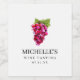 As etiquetas de vinho de Provando de uvas são concebidas com uvas vermelhas com tipografia elegante. Personalize este design com a sua e qualquer outra mensagem personalizada que você gostaria de incluir! A cor de fundo está definida como branca, no entanto, você pode escolher uma cor de preenchimento de sua escolha.