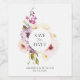 Um rótulo de vinho Salve a Data lindamente desenhado, apresentando delicadas flores em aquarela em tons pastéis suaves. A tipografia elegante e o layout minimalista criam um ambiente sofisticado e romântico, perfeito para anunciar o seu dia especial. Totalmente personalizável com nomes e data.