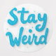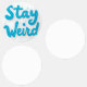 Um conjunto de etiquetas à prova d'água grandes com "STAY WEIRD" em texto azul, excelente para laptop, garrafas d'água ou presentes.