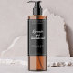 Esta etiqueta de produto à prova d'água para garrafas cosméticas apresenta um fundo preto com texto branco. Esta etiqueta contém espaço para o nome do seu produto, nome comercial, peso do produto, ingredientes, instruções, mídia social e endereço comercial. Este rótulo mede 4 polegadas por 3,5 polegadas (102 mm por 89 mm) e é adequado para frascos com diâmetro igual ou superior a 1,3 polegadas (33 mm) e uma área de altura do rótulo de pelo menos 3,5 polegadas (89 mm). A maioria dos frascos de 8 oz (240 ml) e 16 oz (480 ml) ajustado esta descrição (especificamente garrafas cosmo ou tipo bala e garrafa), mas verifique as especificações do frasco para ter certeza. Este rótulo faz uma escolha de excelente para empacotar produtos de beleza que exigem rótulos mais impermeáveis como champôs, condicionadores de cabelo, loções, géis de chá, espumas de barbear, espumas de limpeza, lavagens corporais, banhos de bolhas e óleos de cabelo.