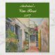 Personalizar facilmente o texto deste rótulo de garrafa de vinho rosa, que inclui um beco floral bonito, ao estilo mediterrânico. Os prédios são amarelo pastel, azul, rosa e ouro. Flores de bougainvillea vermelhas e videiras de chama laranja pendem das paredes.