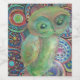pintura de coruja bonitinha com um padrão de círculos e pontos em azul vermelho e amarelo faz esta elegante etiqueta de vinho da coruja