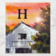Uma cena do país iluminada pelo sol com um céu colorido à noite e um sol no céu e um celeiro branco e uma grande árvore de outono retrata a origem humilde deste vinho fino das refinadas variedades de Hannah. Entretanto, se seu nome não for Hannah, você pode personalizar todas as 3 linhas de texto com suas informações. Arte original de pintura a aquarela "Country Sky Light" de MHamiltonArt.