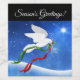 Personalize seu vinho de Natal ou uma garrafa de vinho espumante com este Rótulo Único "Um de um Tipo" de Porta Branca! Ela apresenta uma pomba branca de Natal voando sobre a neve....Carregando um Ramo de Oliva com Fitas Vermelhas e Verdes Fluentes! Este é um Design de Arte Original do Artista Kerry Miller.