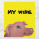 uma pintura fofa de um porco rosa sobre um fundo amarelo brilhante faz com que este rótulo de vinho seja divertido - meu vinho.