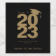 Graduação minimalista, preto e dourado, do rótulo da garrafa de vinho de graduação no estilo moderno, chic e elegante da tipografia. Personalize com o ano de graduação, o nome da escola e a mensagem de felicitação curta.