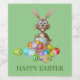 Coelhinho de Páscoa com cestos de ovos coloridos. Cartão personalizado para apresentar como presente aos seus entes queridos.