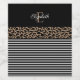 Uma elegante impressão de um animal-leopardo preto e uma etiqueta de vinho de monograma listrada a preto e branco. Excelente de aniversário ou qualquer ocasião especial. Adicione seu nome e inicial. Projetado para você pelo Blackberry Boulevard.