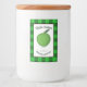 Uma ilustração gráfica de uma maçã vermelha num rótulo de conservas. Este rótulo tem modelos personalizáveis para o seu texto. Arte original do artista/designer Charmaine Paulson