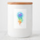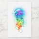 Água-viva grande, iridescente, desenhada artisticamente, brilhante, com longos tentáculos em branco, pintada sobre fundo de aquarela multicolorido. Água-viva arco-íris.