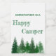 Feliz aniversário de camper com árvores florestais em vários tons de verde