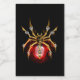 Aranha mecânica, com pá-pá de ouro, engrenagens de latão e uma lâmpada de vidro vermelha sobre fundo preto. Estilo Steampunk.