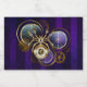 Aranha-do-galo feita de ouro e aço com relógios antigos decorados com engrenagens de ouro sobre fundo roxo, listrado, texturizado com lentes e engrenagens de latão. Estilo Steampunk.