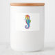 Articulação artificial, brilhante, arco-íris, cavalo de mar poligonal sobre fundo branco. Tatuagem brilhante.