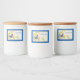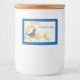 Este rótulo personalizado para um pote de comida tem um bonito pássaro cantor azul e vermelho em um galho com flores amarelas brilhantes sobre um fundo branco com uma borda azul. Personalize seu texto com o modelo.