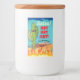 Cacto divertido com óculos de sol e fundo desértico pintado com fogo ou chamas nesta etiqueta de comida de latas caseira do seu molho quente mexicano ou salsa do sudoeste, personalizado com seu texto e nome.