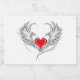 Coração vermelho pintado artificialmente com cinza de asas de anjo, decorado com contorno liso preto.