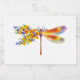 Pintura artificial, libélula floral em laranja e roxo contrastantes com papoila amarela, brilhante e florescente da Califórnia e flores silvestres azuis em fundo branco.