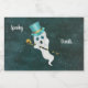 Esta etiqueta de jarro de comida tem um fantasma branco com uma face engraçada vestindo um chapéu azul de rico com fita de ouro segurando uma bengala preta com um crânio de ouro. Personalize o texto das Tratações fantasmas com os modelos.