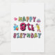 Feliz 8 de aniversário. Design de aniversário engraçado e fofo com um lindo ursinho de pelúcia segurando um presente e um lápis engraçado escrevendo os desejos de aniversário. Uma combinação perfeita para roupas, camisas e acessórios.
