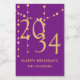 Festivo e feliz. Este design apresenta um conjunto de fontes elegante, data e nome de ano personalizáveis e uma imitação de uma granja dourada parecida com as luzes de natal de férias. O design é colocado contra um fundo roxo lavanda de tendências cônicas. Altere o texto para MERRY CHRISTMAS se preferir. Perfeito para os favores de presentes de Natal, presentes caseiros personalizados ou adesivos de presente.