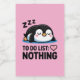 cute sleeping penguin, to do list nothing, kawaii penguin with heart, lazy penguin art, playful penguin illustration, penguin nap design, heart symbol nothing, adorable cartoon penguin, chill mood graphic, funny penguin caption, relaxed vibe art