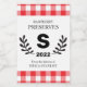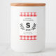 Rotule suas receitas caseiras com um toque de país! Um padrão de gingham vermelho borda um espaço para incluir seu monograma inicial, cercado por um louro preto. O texto acima e abaixo permite a personalização, incluindo o tipo de comida, o seu nome e a data.