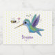 Este design bonitinho apresenta um beija-flor verde e roxo feliz com um amigo de abelhas em um fundo bolinhas amarelo. Tudo feito em estilo de ilustração de desenho animado feliz!