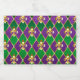 joias, fundo em Mardi Gras de losango roxo e verde, lírios de ouro decorados.