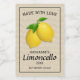 Etiquetas rústicas para limoncello caseiro com fundo de juta, limões e um modelo de texto fácil de personalizar.