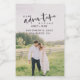 Caligrafia manuscrita com Na moda de script moderno Nossa Aventura Começa Foto Casamento Salve a Etiqueta de Anúncio de Data