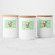 Este rótulo personalizado para um pote de comida é verde com um Papai Noel bonitinho segurando um cartaz de Natal Feliz cercado por pequenos animais de floresta incluindo aves, coelhinho e esquilo por uma pequena árvore de Natal acentuada com um santo verde. Personalize seu texto com os modelos.