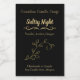 Etiquetas de produto preto chic prontas para você personalizar com suas próprias informações. O preto elegante com sotaque dourado floresce no topo e uma vinha dourada, no meio do rótulo. Personalize o texto amarelo do ouro para seus produtos.