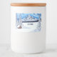 Etiquetas de contentores de comida com uma bela cena de inverno, incluindo montanhas de neve, cabana rústica e neve cobertas por vergreens. Você tem a opção de revisar ou excluir o texto. Arte original por W.B.