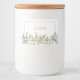 Recipiente de comida com design de cor de água e floral suave. Flores em cor verde de pêssego e sábio. Uma na moda para rotular os recipientes de comida.