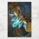 Barbeiro véu com asas transparentes azuis e lâmpada verde sobre fundo vestido, marrom, texturizado. Estilo Steampunk.