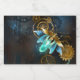 Barbeiro véu com asas transparentes azuis e lâmpada verde sobre fundo vestido, marrom, texturizado. Estilo Steampunk.