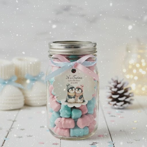 Featuring the sweet twin penguin chicks design, these labels instantly elevate standard water bottles and fit perfectly with the "It's Twins" winter theme.