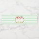 Rótulo de garrafa de água de texto personalizado em forma de listras verdes e brancas da casa da moeda com flores cor-de-água rosa claro e cor-de-rosa claro e moldura dourada. Pode ser personalizado para qualquer ocasião, perfeito para chás de panela, casamentos, chás de fraldas e festas de aniversário.