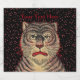 Este rótulo de garrafa de cerveja personalizado tem a cabeça de um tigre asiático listrado castanho e preto com uma cara de aspecto feroz e traçado em vermelho num fundo preto com pontos vermelhos. Personalize seu texto com o modelo.