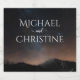 Casamento noturno sob as estrelas. Astrofotografia do céu noturno de uma incrível neve coberta de paisagem com milhões de estrelas no céu e luz brilhante. Coleção de casamento com texto personalizado personalizável.