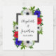 Design apresenta flores rosadas patrióticas, brancas e azuis do anêmona panda com eucalipto verde sobre uma cinza colorida de carvão.