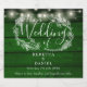 Com luzes bonito de cordas, este elegante design de casamento pode ser personalizado com suas informações em letras elegantes em um histórico rústico de madeira verde esmeralda. Projetado por Thisnotme©